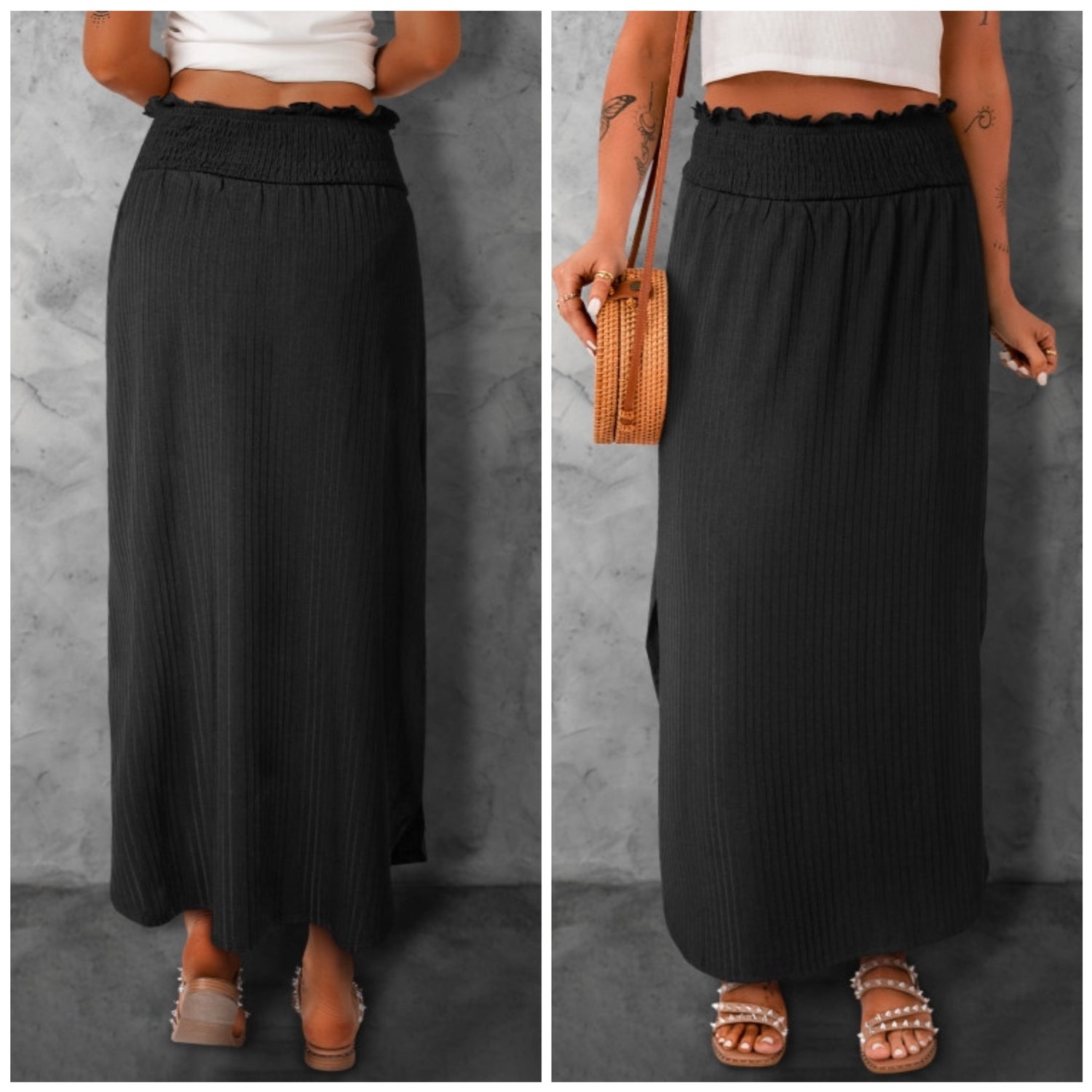 Allyson Michele — XL, black ribbed maxi with smocked waist