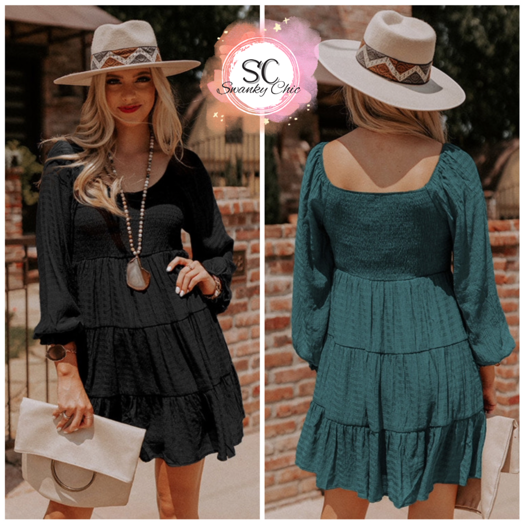 Alyssa Snyder — Medium, black high waisted mini dress with balloon sleeves
