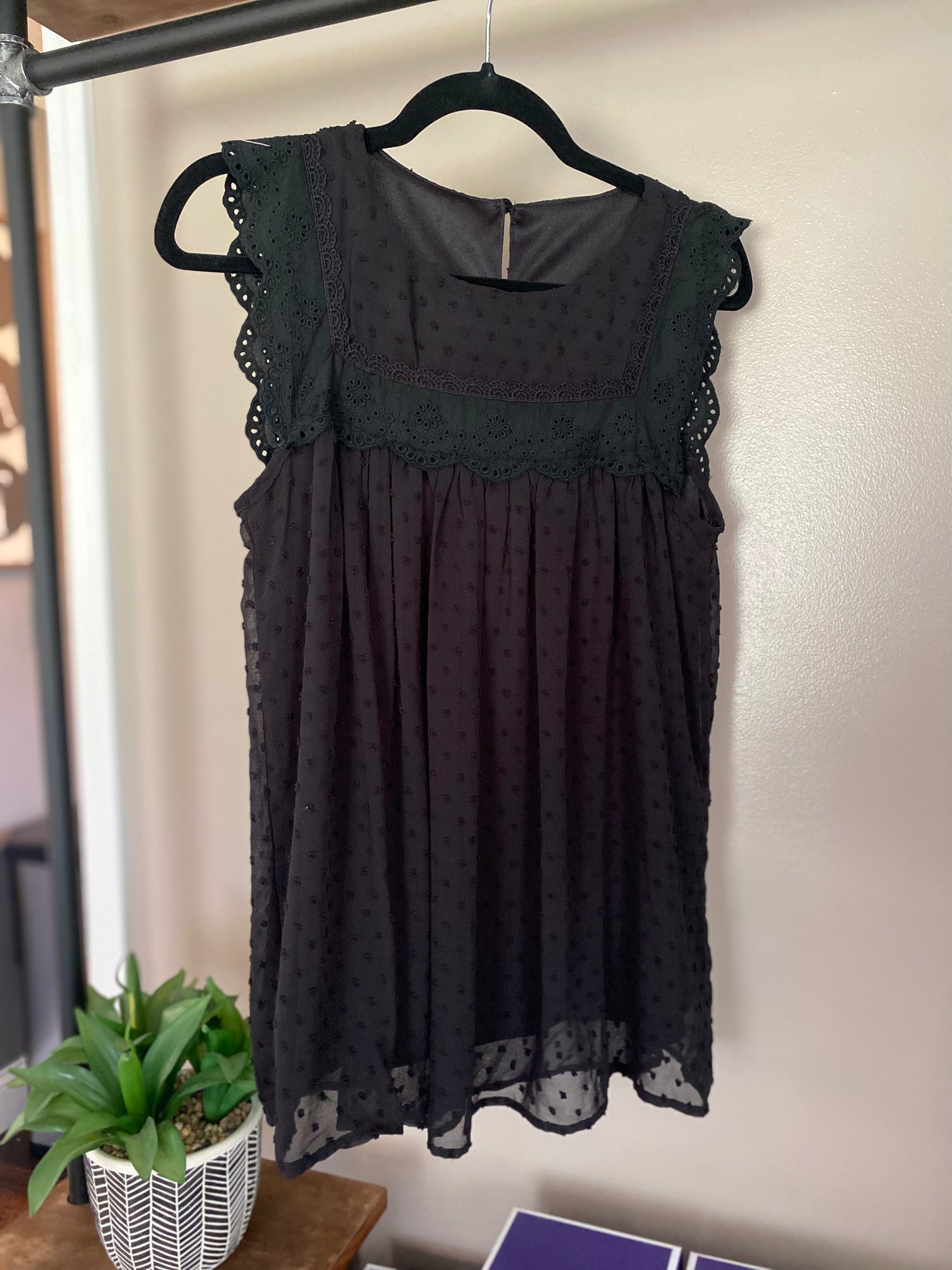 Amanda Jones Reuss — Large, black Swiss dot blouse