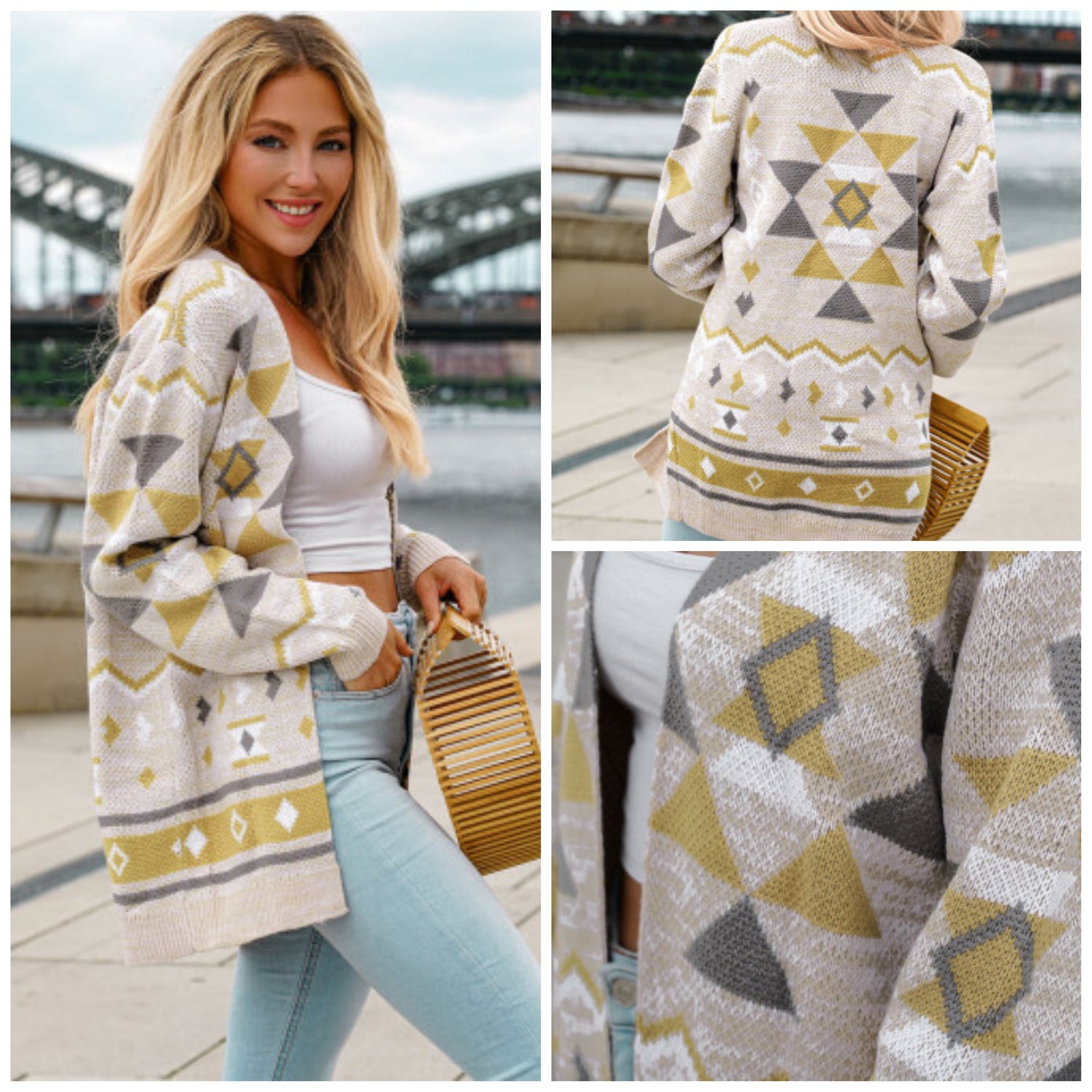 Amanda Jones Reuss — Large, yellow/Grey geometric cardigan